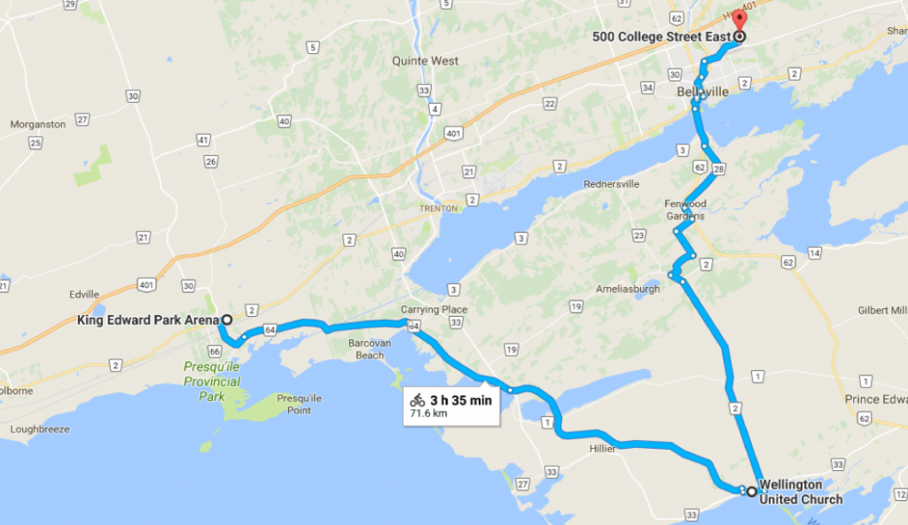 The route one team of cyclists took on the way to Belleville.