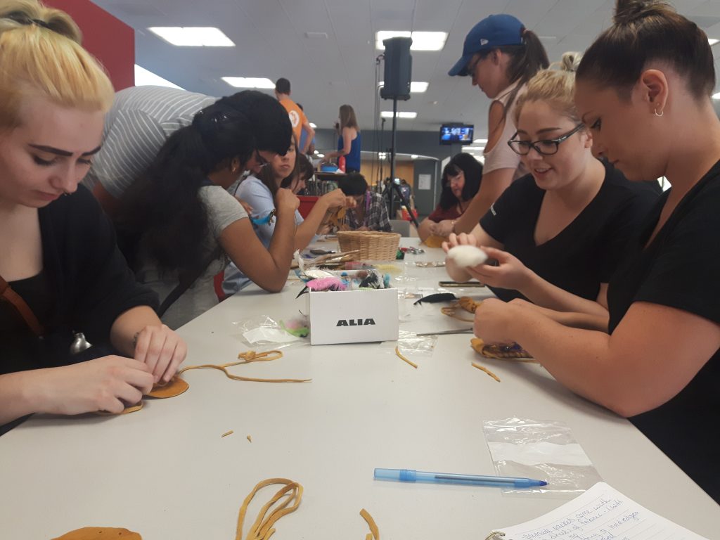 A small table in the dining hall was home to a small group of students who concentrated on their craft over the loud music in the background. The busy cafeteria didn’t break the focus of Azhia Bacon, 19, who says she was really trying to understand how to make the bag properly and what significance it had. “At some point, I can see myself going up there (the Indigenous Resource Centre) to learn more.”