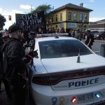 At around 2:45 p.m. members of the crowd began to disguise their identity by covering their faces and heads, police said in a press release Monday.