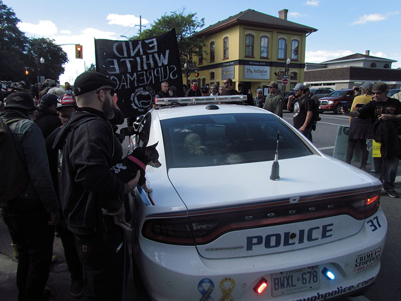 The incidents were part of two opposing protests in the park. An anti-immigration rally was organized by Canadian Nationalist Front, a white nationalist group based in the Greater Toronto Area, was scheduled for 2 p.m. Saturday.