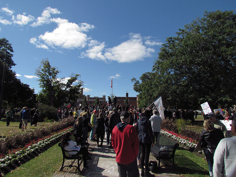 PETERBOROUGH – Two opposing protests filled Confederation Park, in Peterborough, Saturday afternoon, ending with one man facing charges after violence broke out during an otherwise peaceful event.