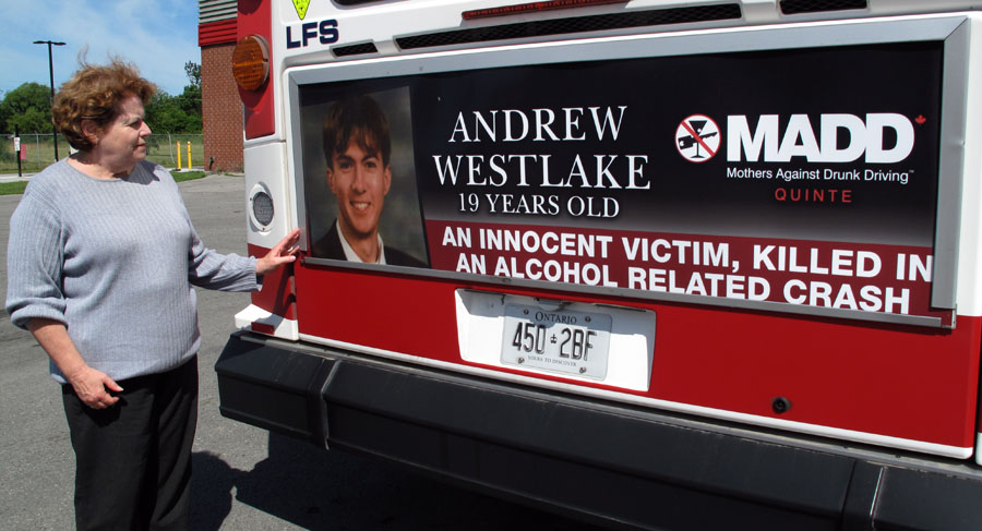 For the month of June the pictures of two people killed by drunk driving have been on the back of two Belleville city buses. One of those pictures is of Nancy Santon’s nephew, Andrew Westlake.
