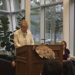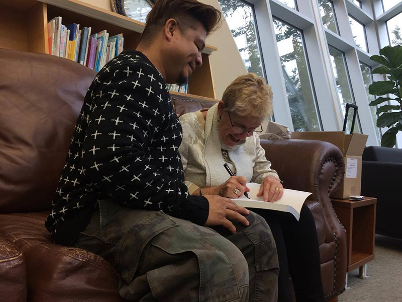 The book launch included readings from three of her Loyalist colleagues – former broadcast student Lynn MacKenzie, former broadcast journalism professor Len Arminio and former radio broadcast professor John Henderson – as well as MacLeod herself.