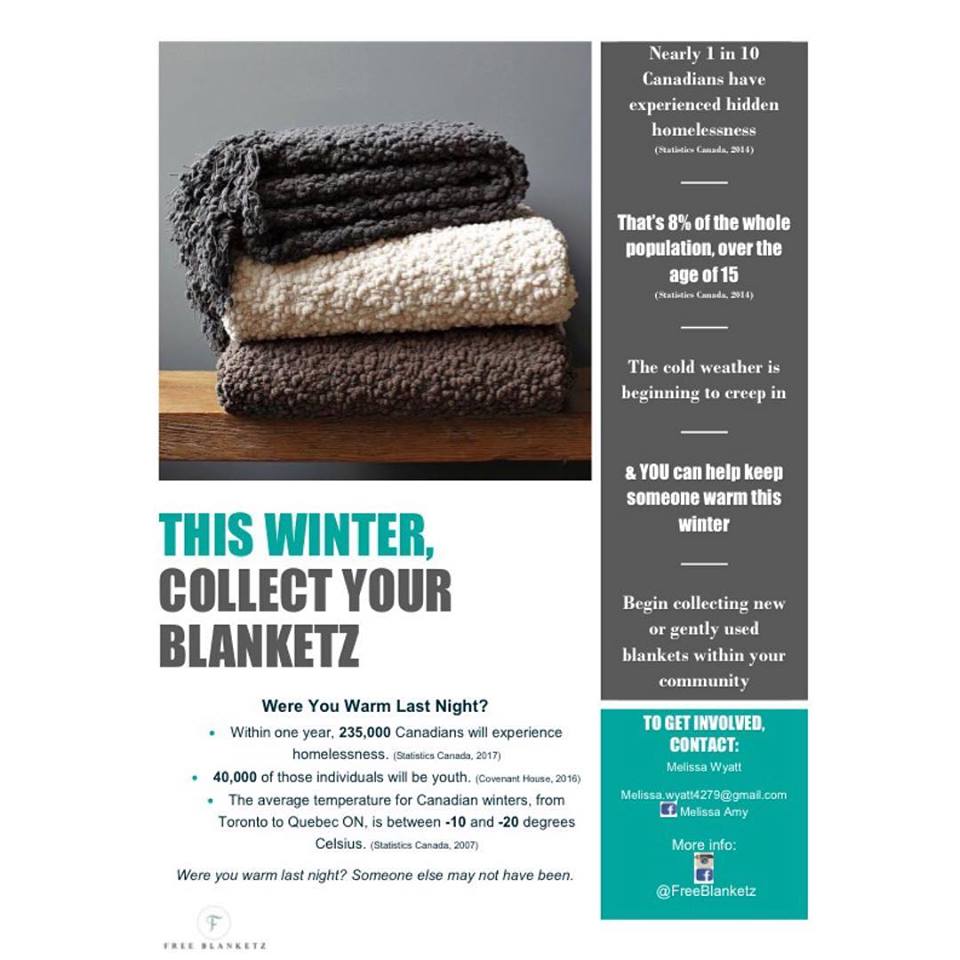 The campaign aims to give warm blankets to those in need this winter and thanks to Wyatt the entire child and youth care program at Loyalist College is now participating.