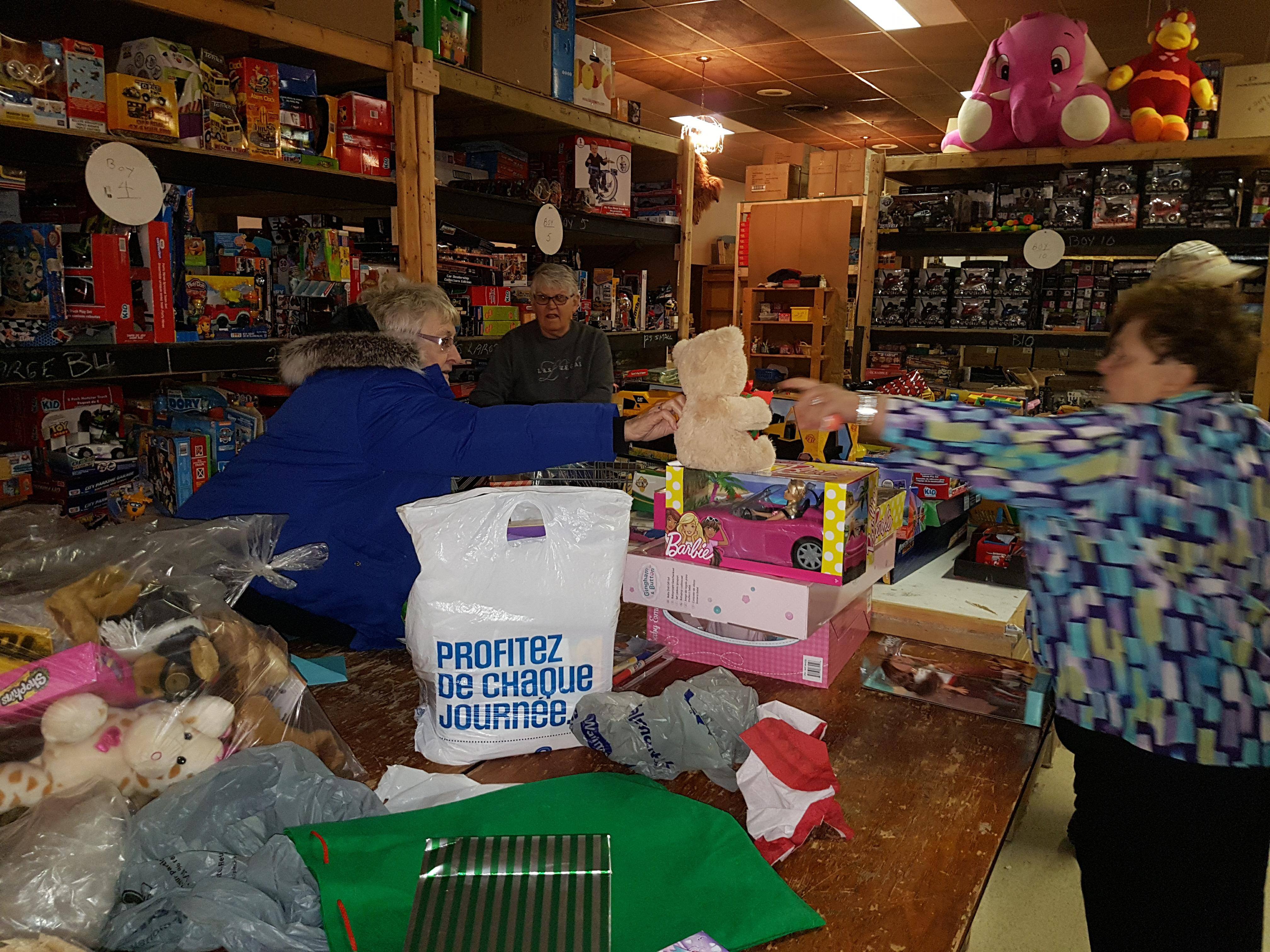 “We always have our boxes planned, so we make sure that there is one large item as well as a puzzle in each box,” “We also make sure we pack toques and mittens,” Turcotte said.