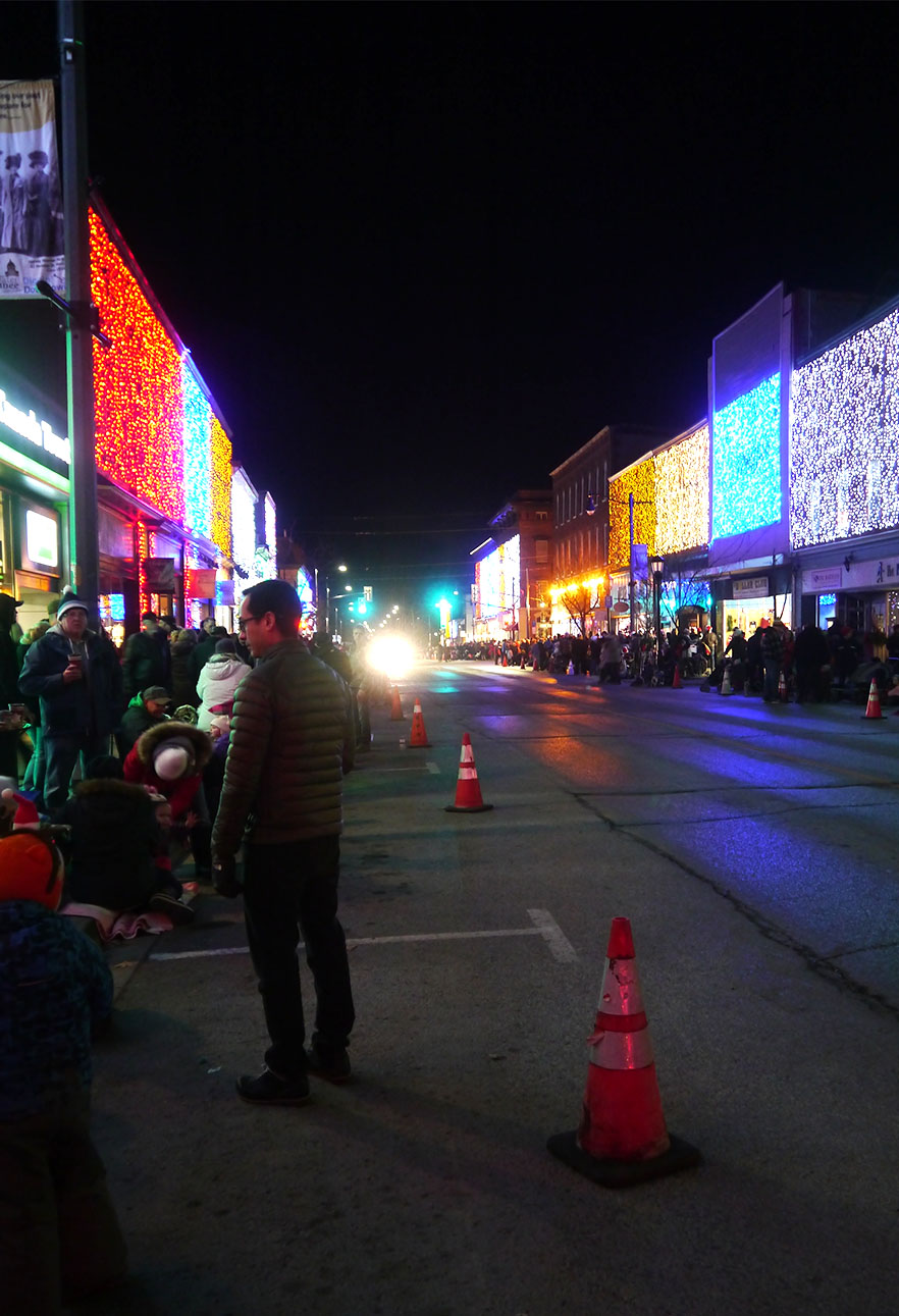 “I moved here three years ago from Ottawa, and my family has been here every year,”says Jonathan Daniel, parent of three and local business owner. “We absolutely love it. The vibe of the town, all the lights, all the people are so generous and having such a good time. We would never miss it.”