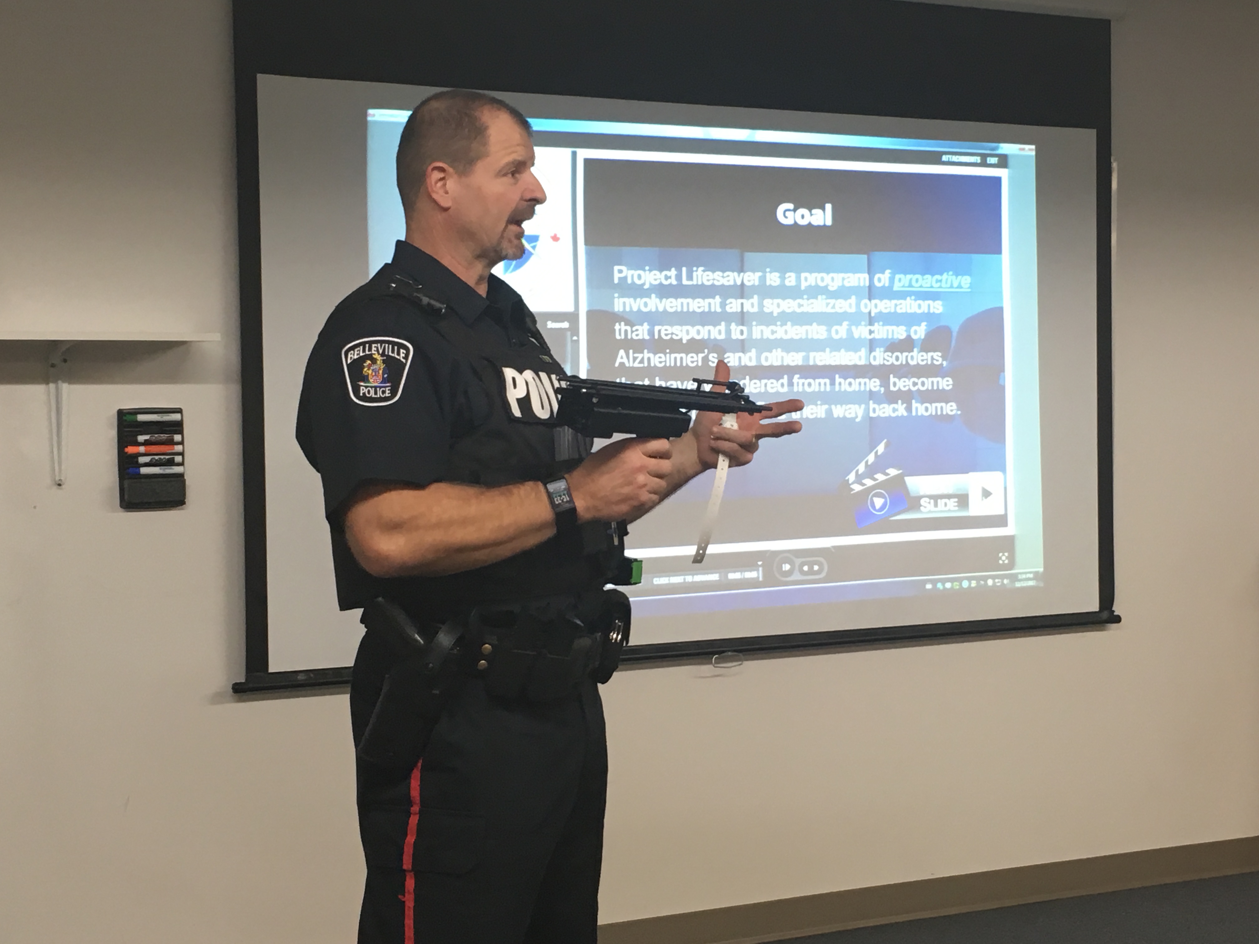 Project Lifesaver is a joint project between the Belleville police and the Hastings-Prince Edward Alzheimer’s Society. The device is used to track people who have Alzheimer’s, autism and Down Syndrome if they wander off.