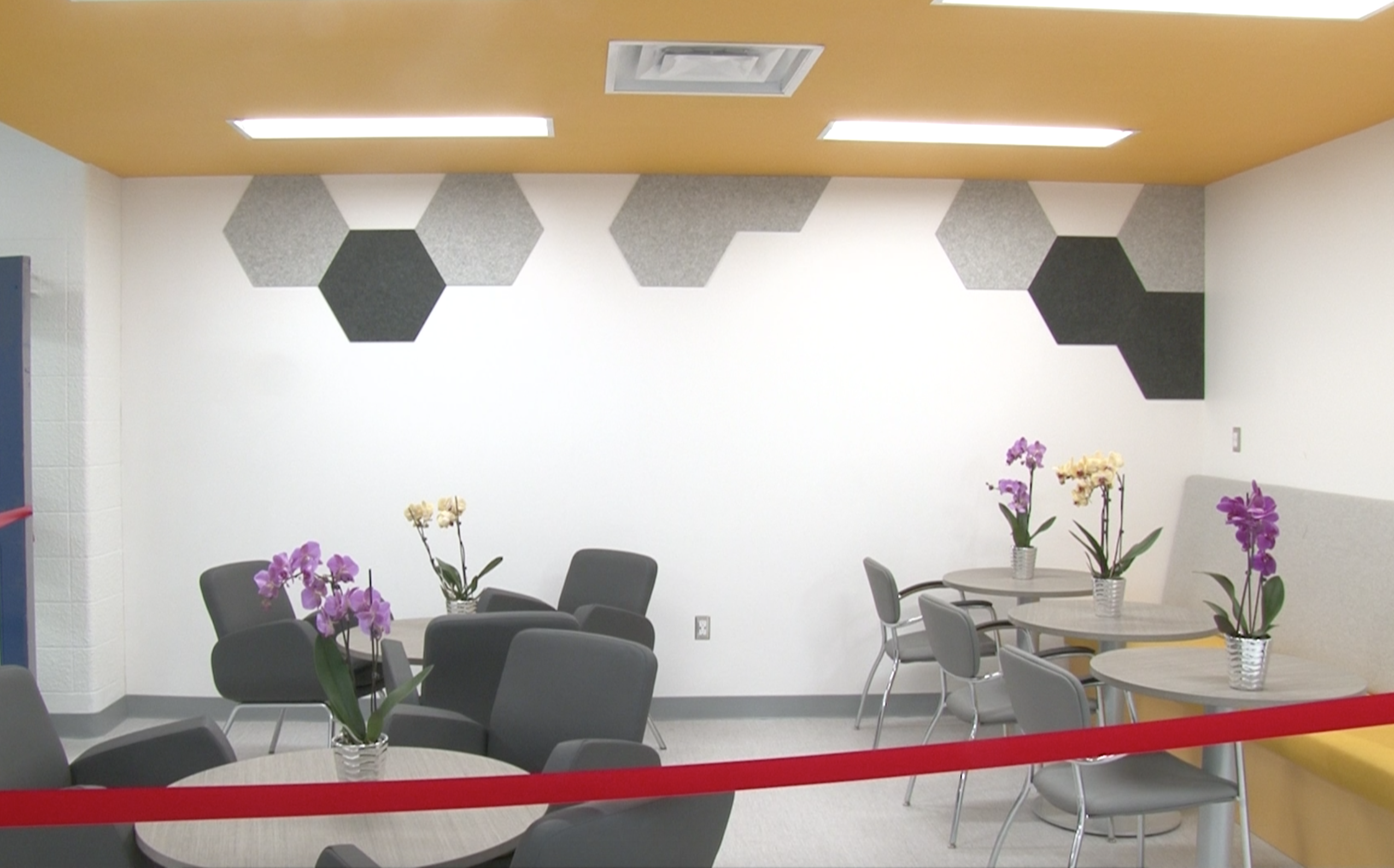 The updates include a full whiteboard wall for students to doodle and work on, new Canadian-designed and made furniture, brighter LED lighting, electrical outlets with USB ports for extra function, and a separate study room equipped with a television, whiteboard, desk and swivel chairs.