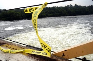 - TRENTON, ON. (07/08/2011) Police tape marks Dam 1 along the Trent River near Trenton where a 16-year-old boy’s body was found Sunday after he went missing while swimming with friends Saturday evening. Photo by Linda Horn91x News, August 8, 2011, 12pm