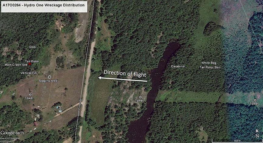 In a report released Thursday afternoon, investigators with the transportation board said that the crash took place when the crew, which had been doing maintenance work on high-power transmission lines, approached a staging area to land. Some bags carrying tools were being stored on the exterior of the helicopter, where they would normally have been strapped down, but one of the bags came loose and struck the tail rotor. As the pilot tried to land, the helicopter went out of control.