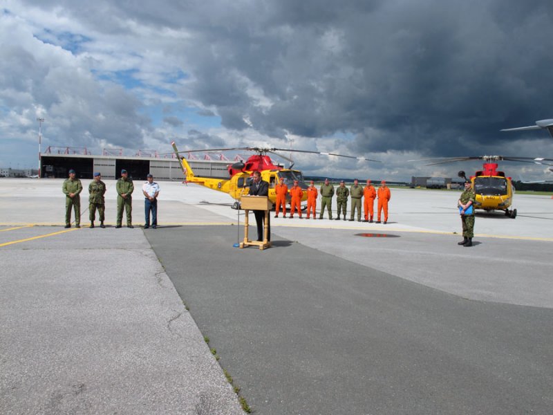 TRENTON, ON (10/08/11) Minister of National Defence Peter MacKay announced today that there will be 65 personnel and three CH-146 Griffon Helicopters to a desperate Jamaica during the hurricane season. Jamaica requested assistance because four of their search and rescue helicopters are under going emergency maintenance. Photo by Steph Crosier