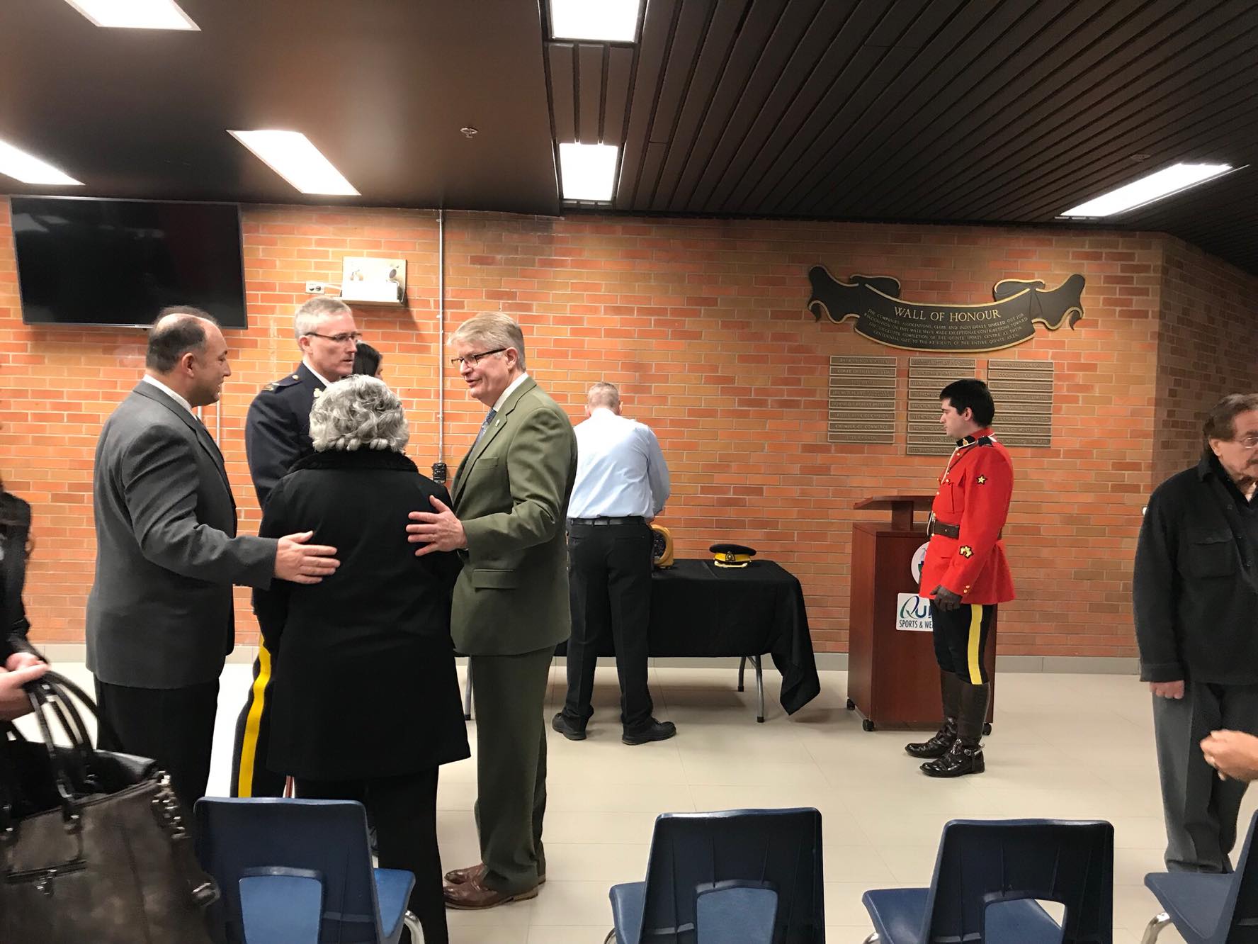 BELLEVILLE – Friends and family members of RCMP Const. Gerald Fortis, along with members of the public, gathered at the Yardmen Arena Thursday morning to receive a donation in his name.