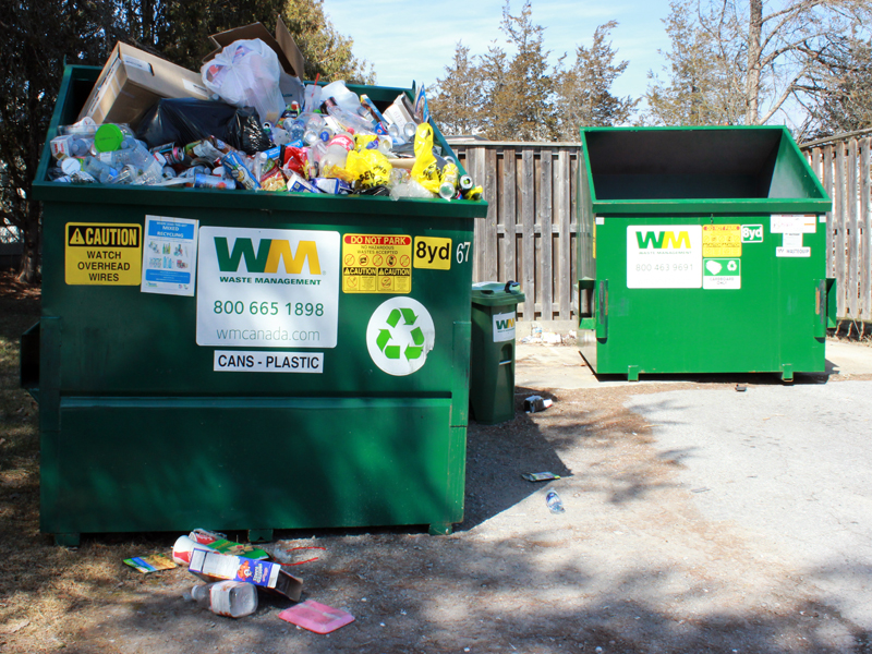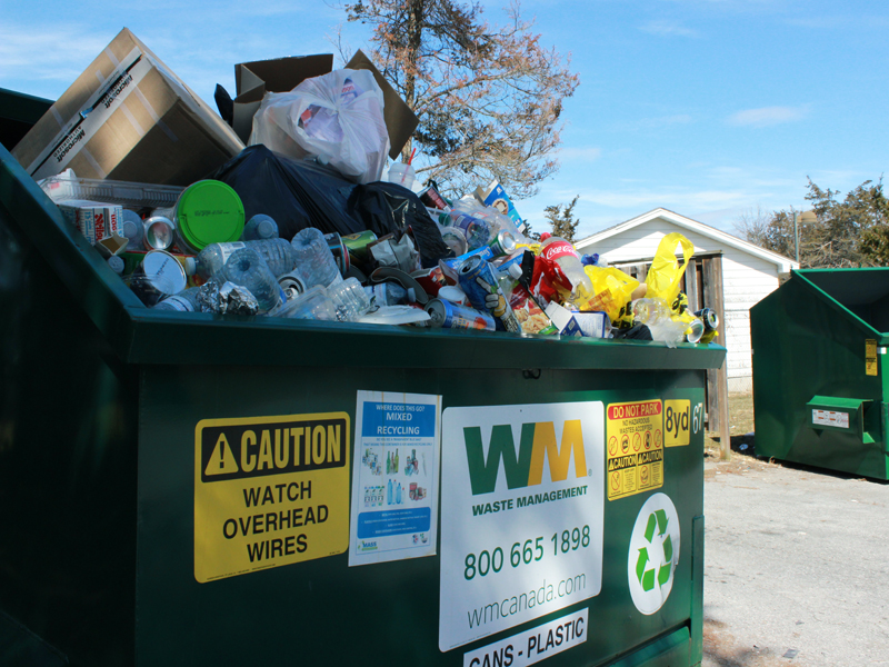 The Tri-Bins around Loyalist College make it easy for students to recycle and understand what waste goes into which bin. Photo by Becky McMullen, QNet News