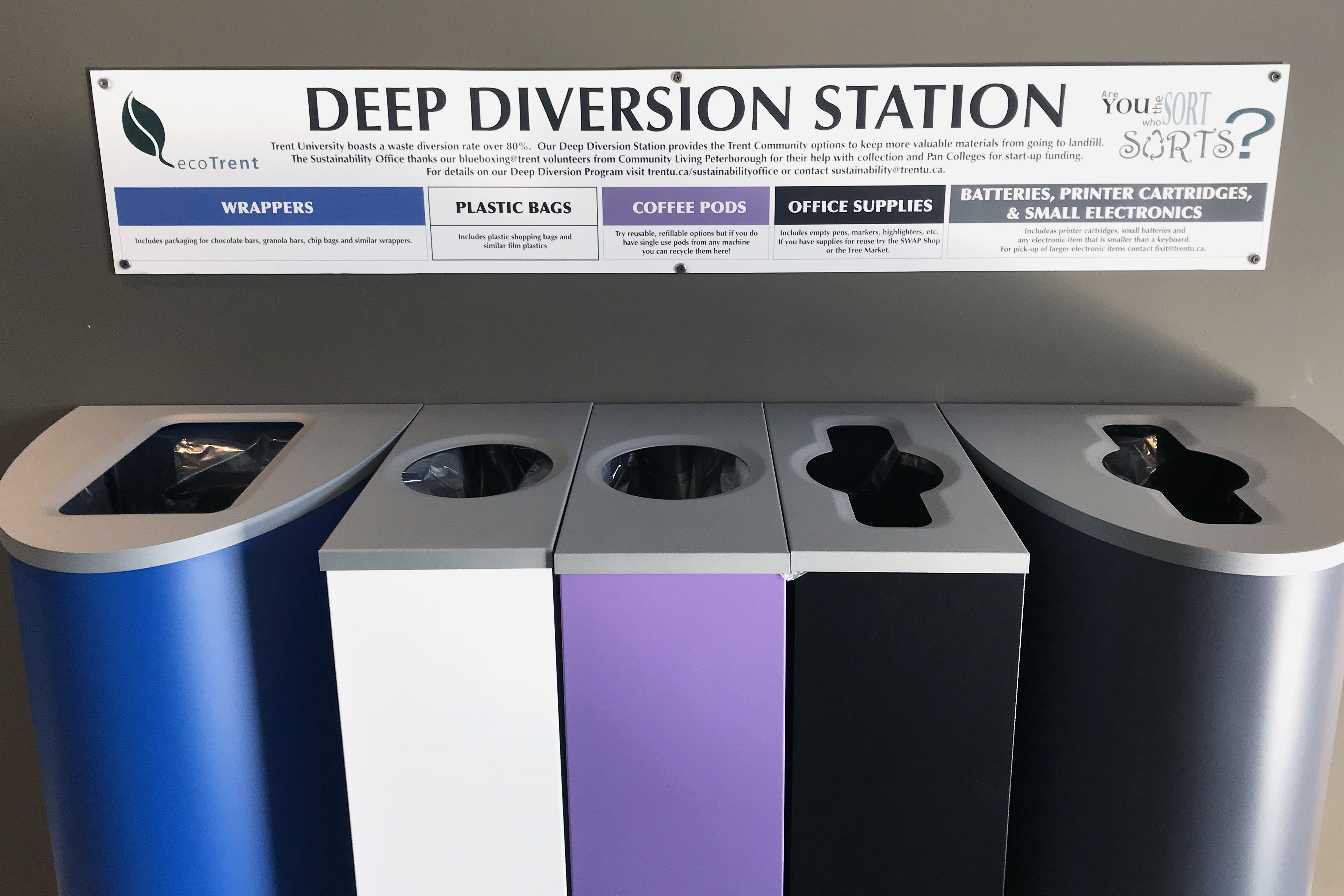 Loyalist College has taken inspiration from some of Trent’s programs and used the ideas to reduce the amount of waste it produces, according to Jessica Spooner, Sustainable Loyalist’s co-ordinator. One of the programs Loyalist introduced was the removal of waste bins in classrooms. The logic was that this would force students to find one of the many Tri-Bins – bins for trash, paper and plastics – that are around the school, and once they saw the recycling options they would choose that instead.