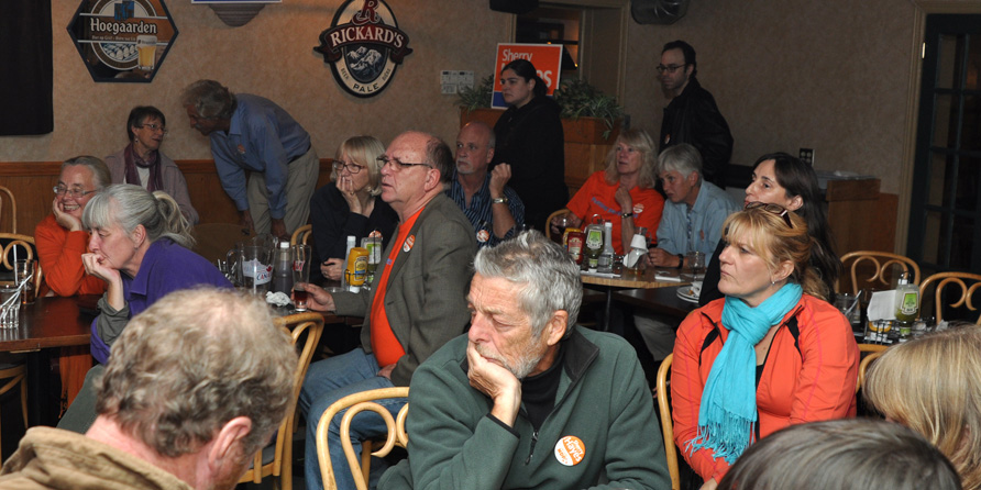 NDP supporters await the results of the election. Photo by Matt Kerr