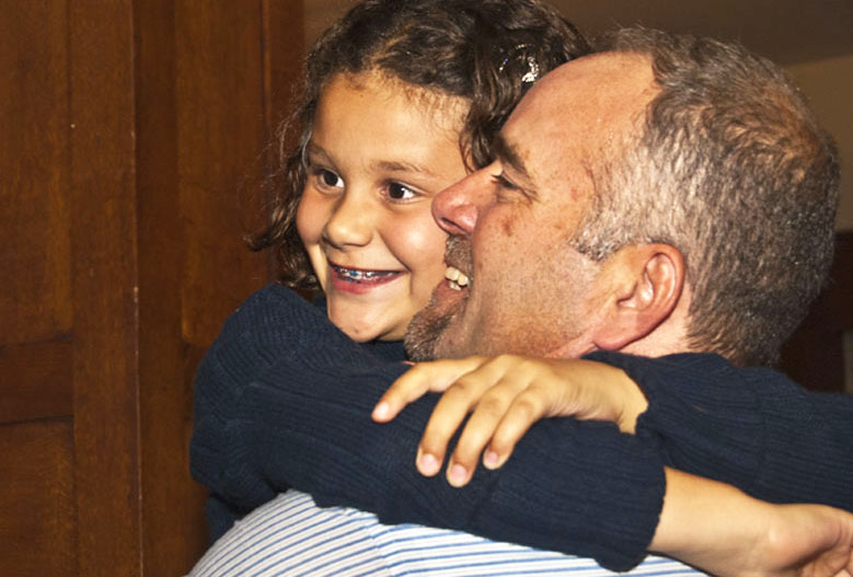 Newly elected Progressive Conservative MPP Todd Smith lifts his daughter Reagan, 8, for a celebratory hug aftering winning the election by 42.1 per cent. Photo by Ashliegh Gehl.