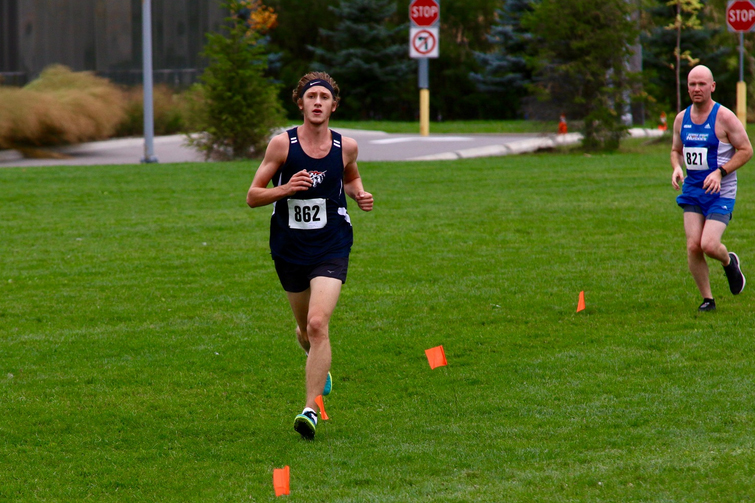 Bobby Buck racing eight kilometres at a meet hosted by Centennial College on Oct. 13. He placed sixth out of 108 runners in a time of 27:49.4 minutes. Photo by Jim Buck