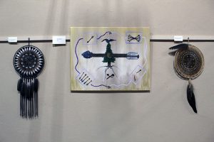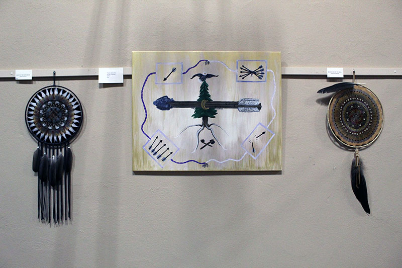 The sanctuary of the church is currently being used to display Indigenous artwork by local Mohawk artists Rebecca Maracle, Doug Brant, Janice Brant and Steven Loney.