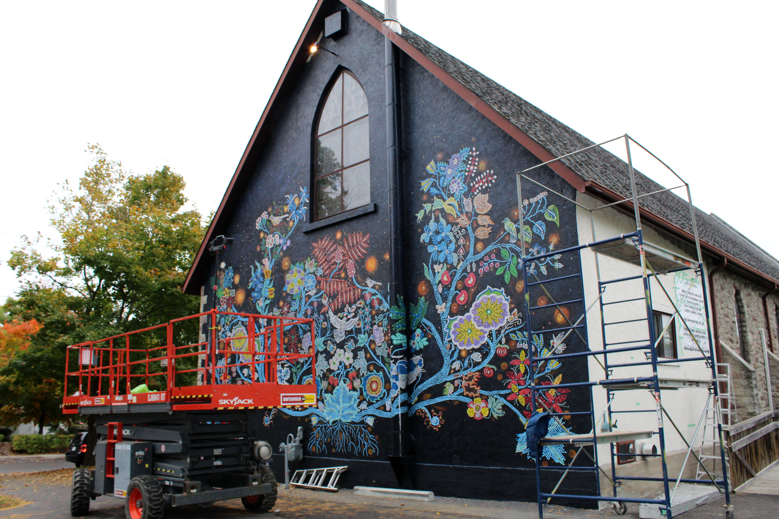 Wisdom of the Universe by Métis artist Christi Belcourt was the chosen piece for the mural at St. Andrew’s Presbyterian Church in Picton. Photo by Syerra Turry, QNet News