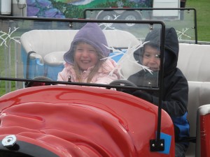 Tyendinaga Mohawk Territoy, ON (10/01/11) Five year old Emily rides the Jalopy Junction with brother, four year old Xander. Photo by Trish Allison