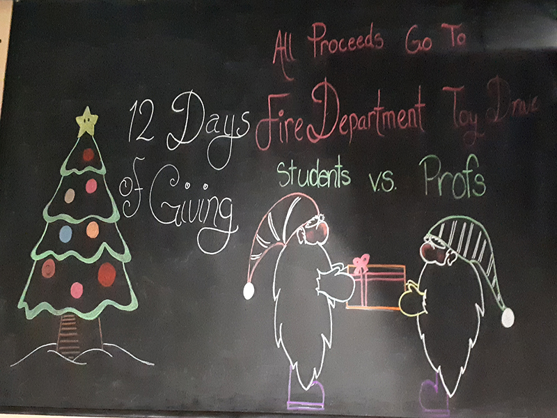 The idea for Student versus Staff: 12 Days of Giving came when public relations students picked different causes to help and it was decided to help the Belleville firefighter’s toy drive. Another student came up with the idea for the event after that.