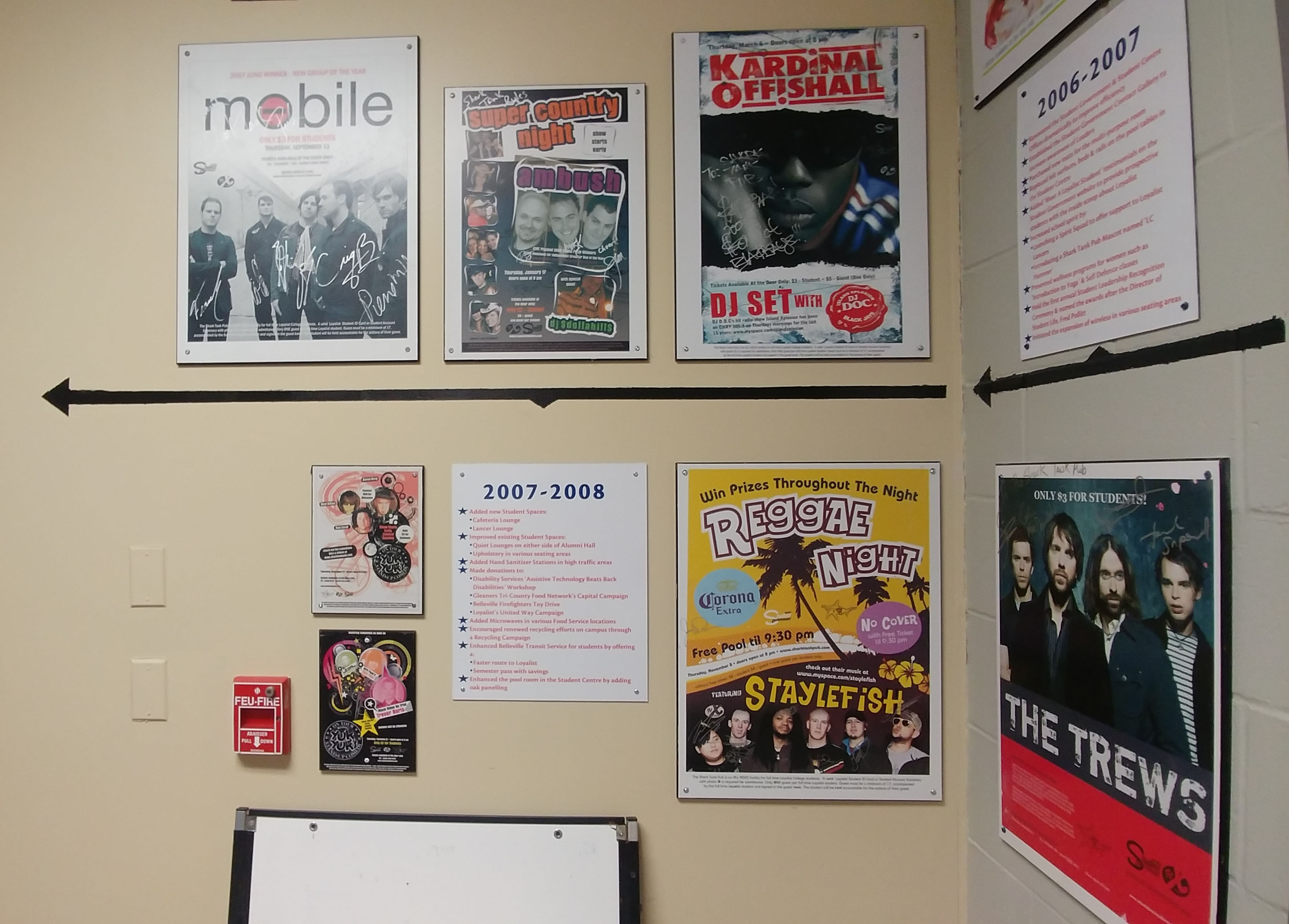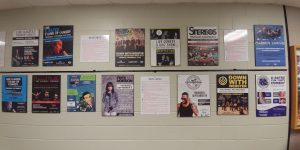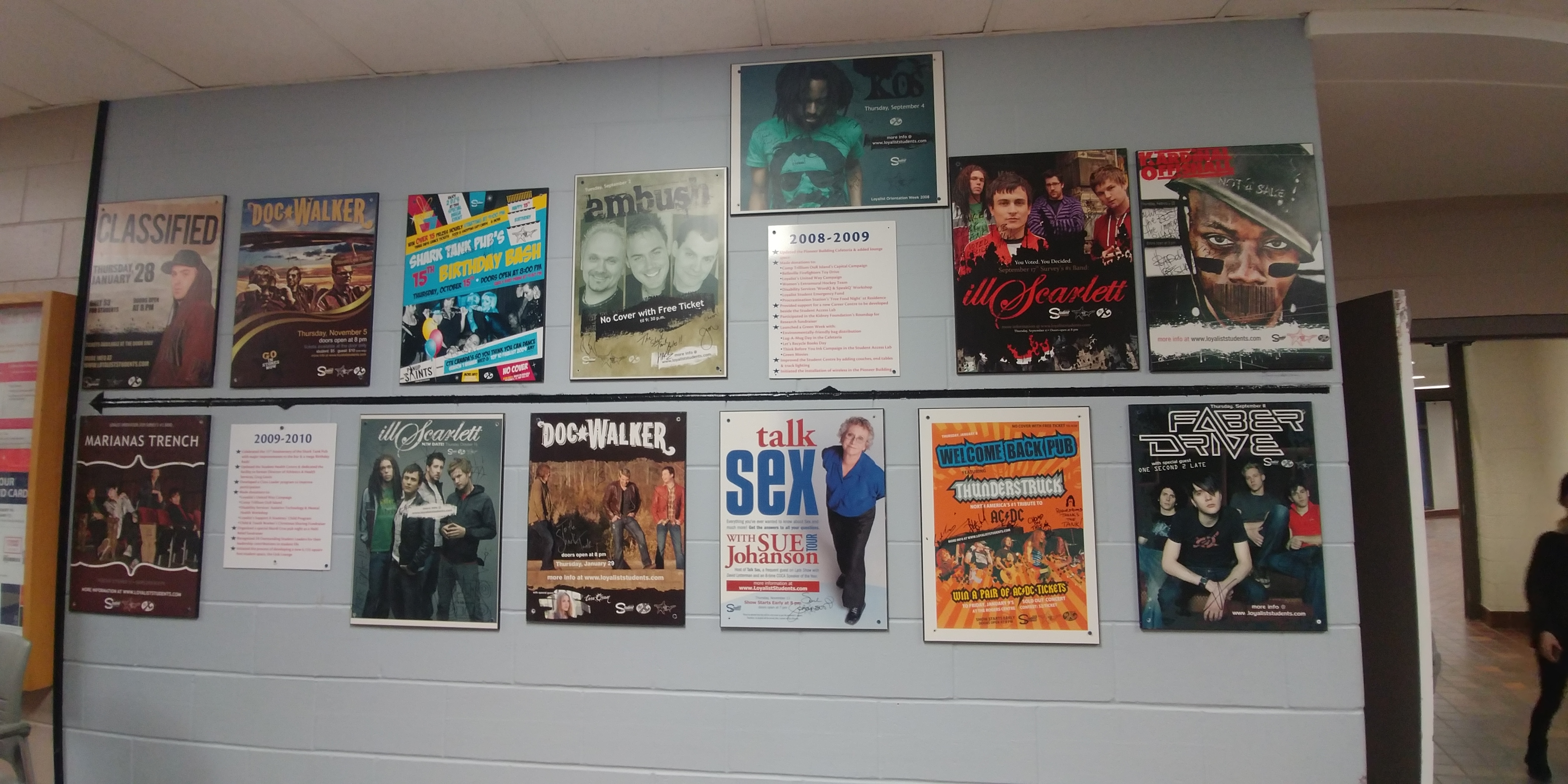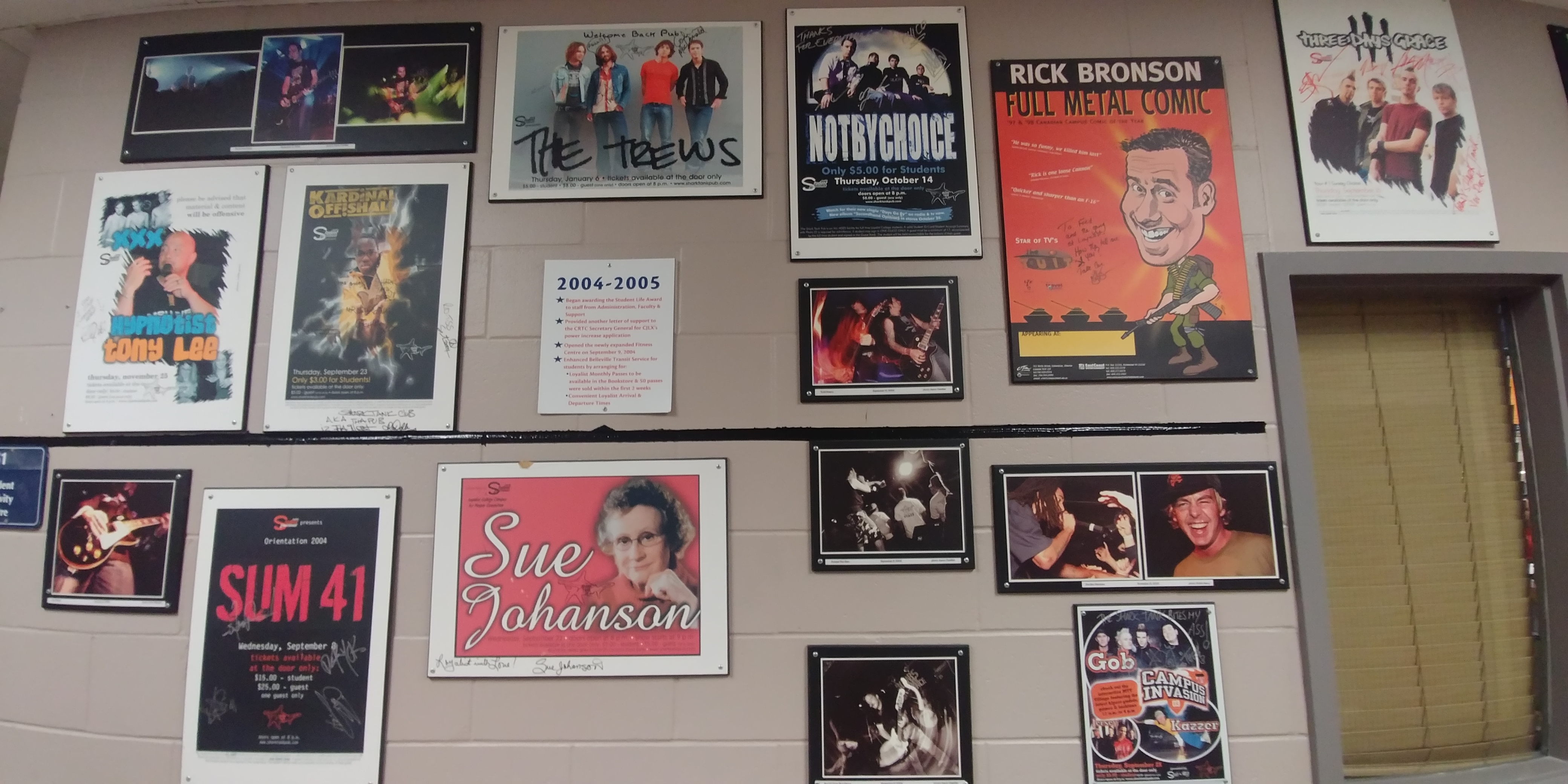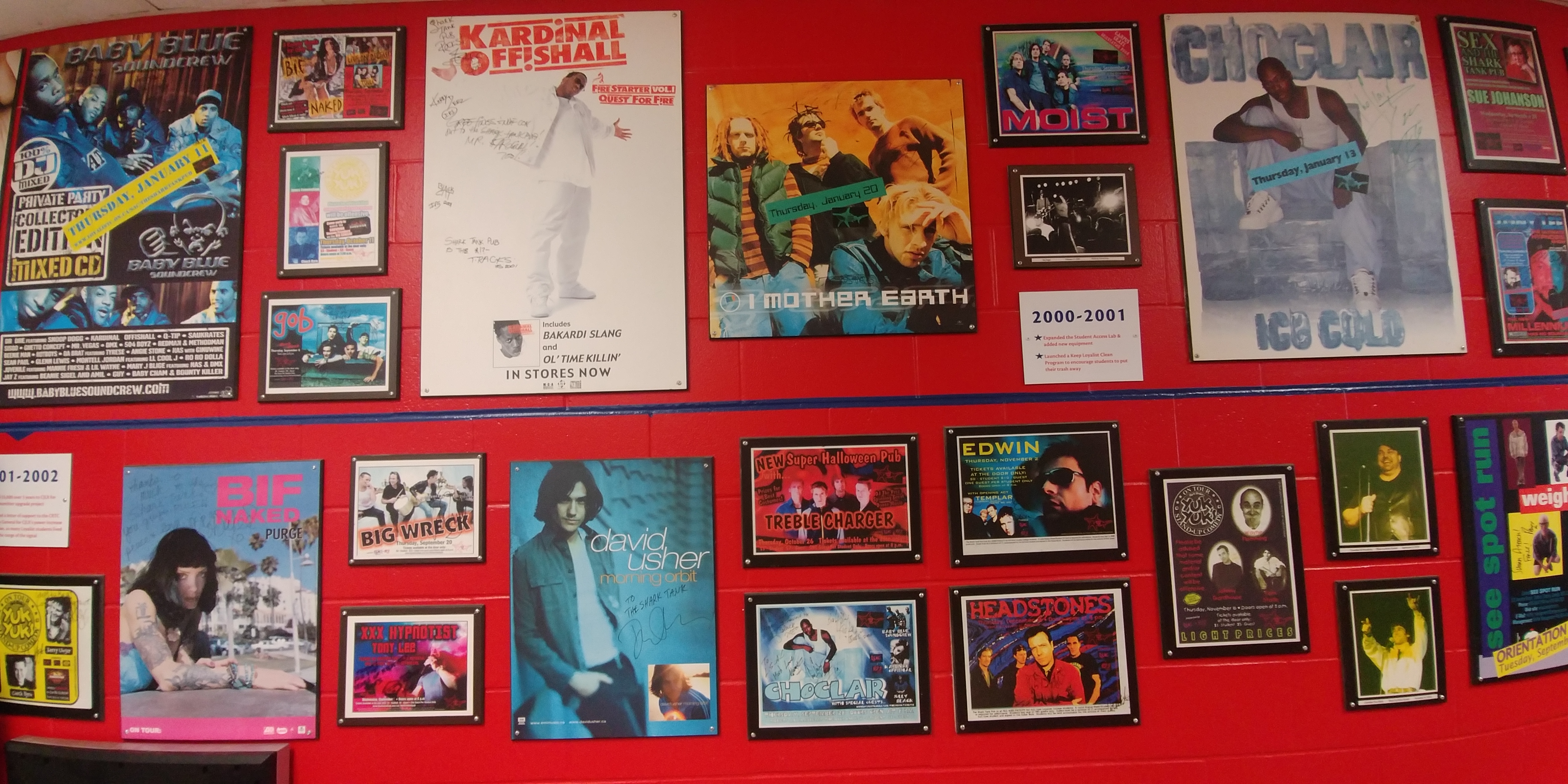 The outside walls of the Shark Tank are covered with posters of performers who appeared there in the past: