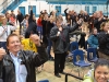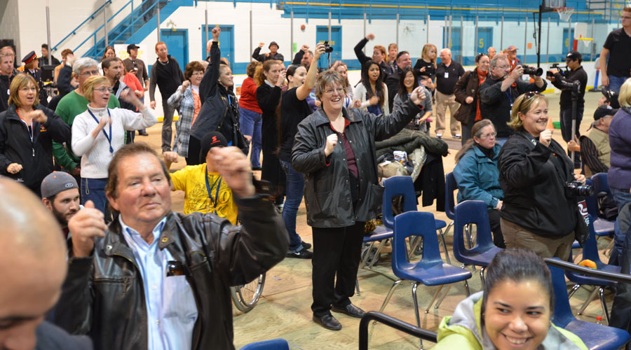 Audience members show their support for Rick Hansen at his speech at the Quinte Sports Center Monday.