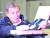 Rick Hansen places a relay medal in a box to mark the end of this leg of the relay.