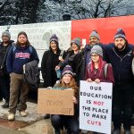 The bus arrived at the corner of University Avenue and Armoury Street where the march began. The group disembarked and joined the march starting at noon, which ended at Queen’s Park. Many in the crowd were holding different signs with slogans like “Our education is not the place to make cuts,” and “Cut Ford not OSAP.” Still, others chanted and banged drums loudly.