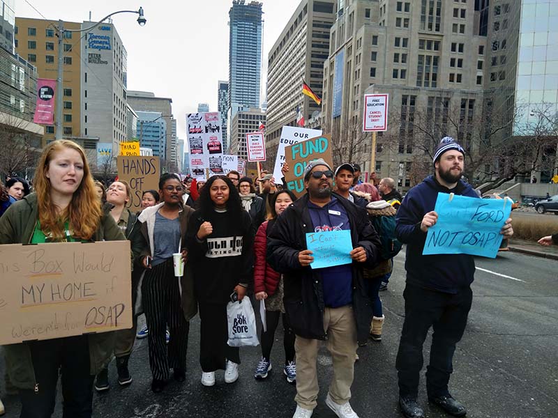 TORONTO – A dozen students from Loyalist College joined hundreds of other students in a protest march in Toronto on Monday over the provincial government’s new policy changes to OSAP.