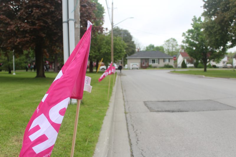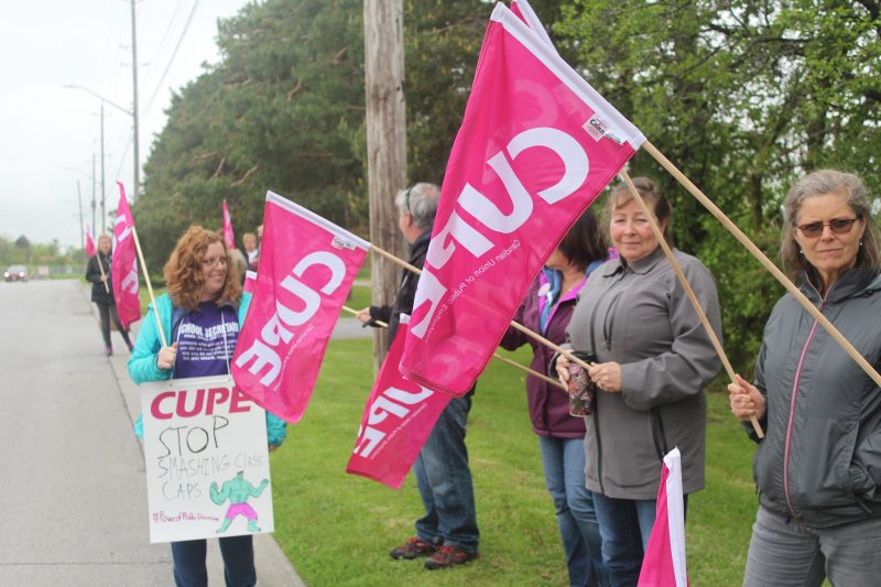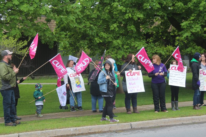 NAPANEE – Teachers and support staff rallied outside of the Algonquin & Lakeshore Catholic District School Board in Napanee on Tuesday to protest government funding cuts that will see the loss of 21 jobs by the end of August.