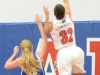 Lancer Haley Sisler shoots while Grizzlies Katie Wiggins (13) and Kimberly Solorzano (5) defend.