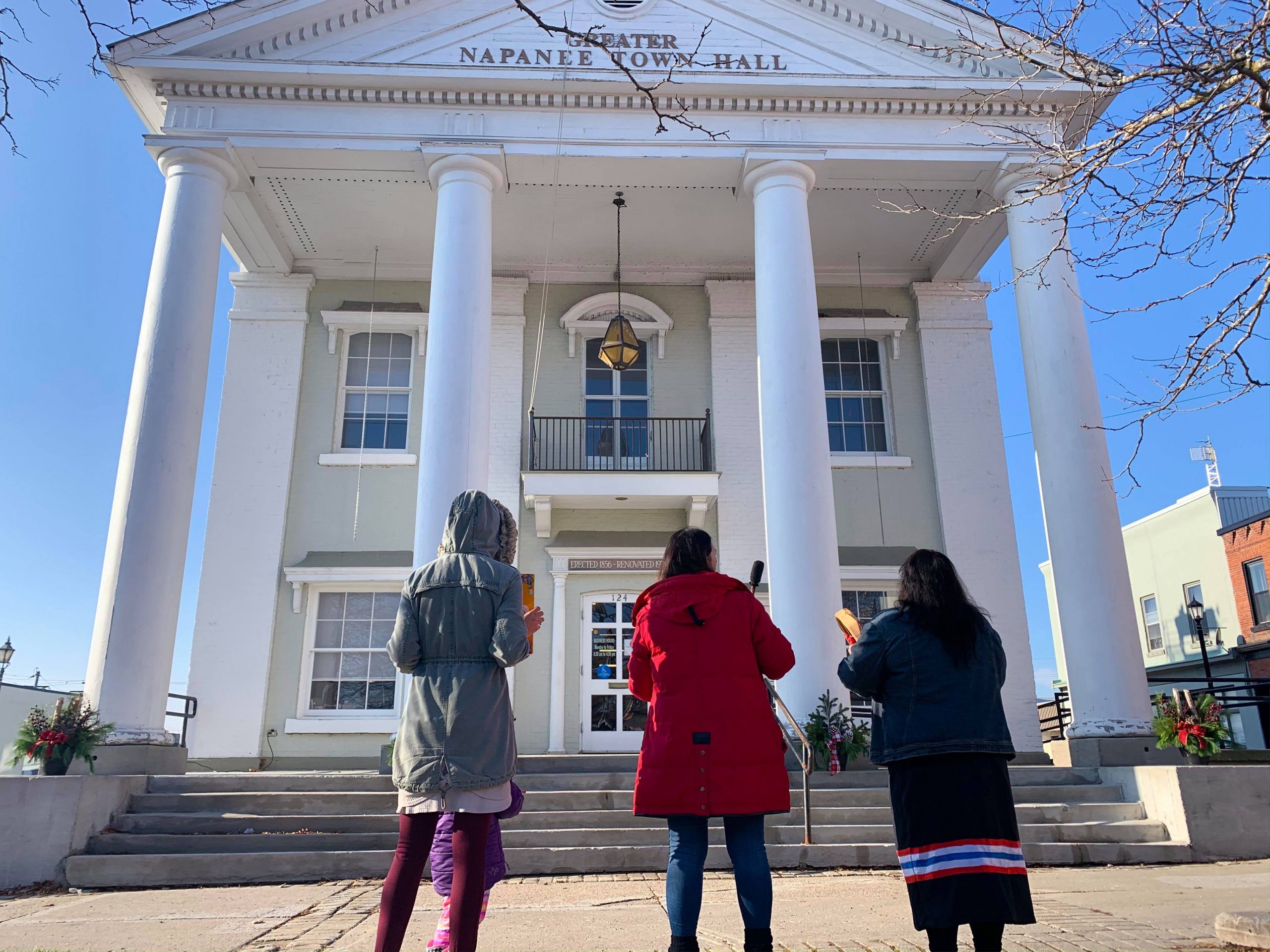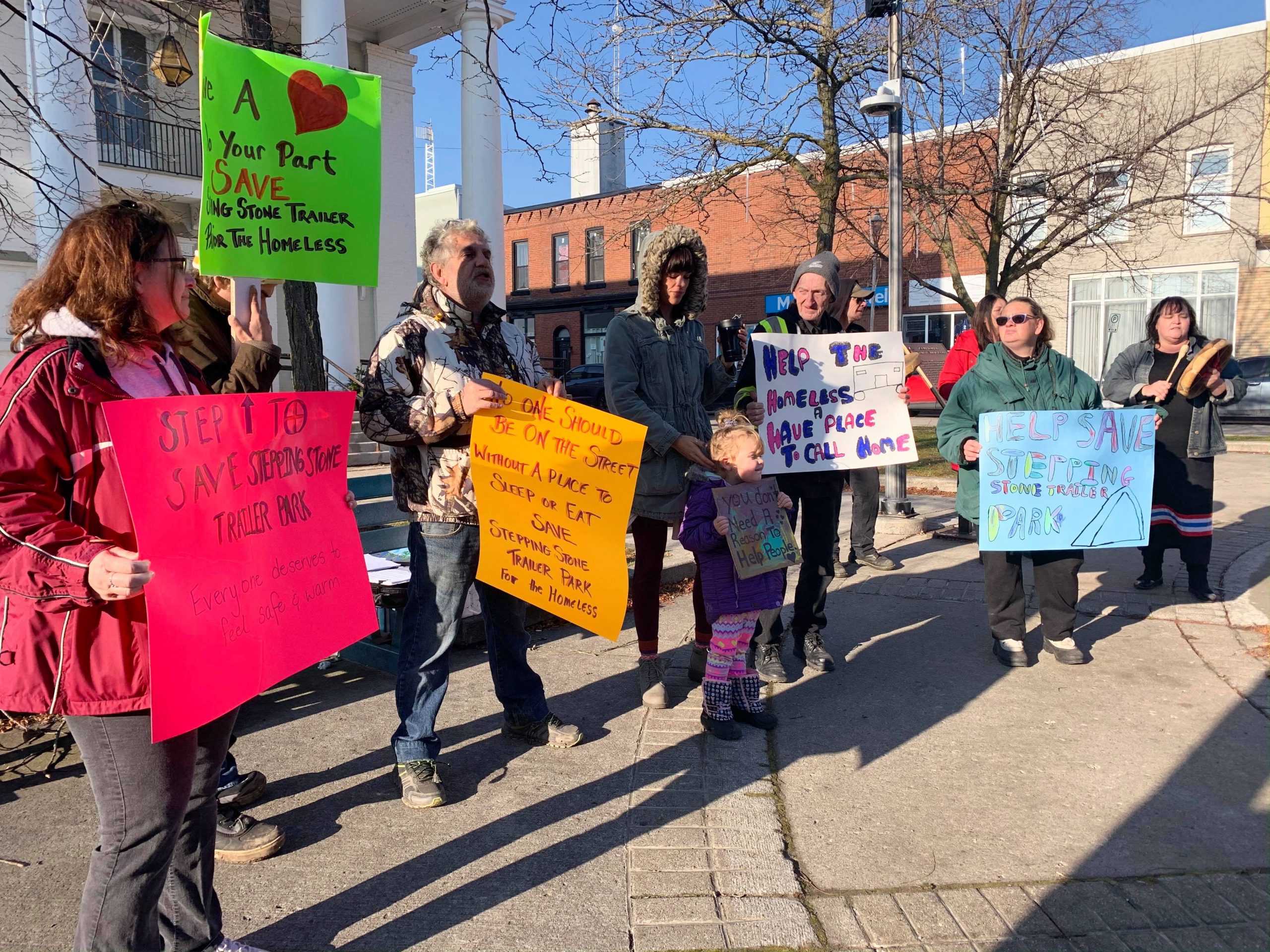 NAPANEE – Protesters gathered Monday outside Napanee’s town hall to fight the town’s threat to remove trailers that are housing homeless people.