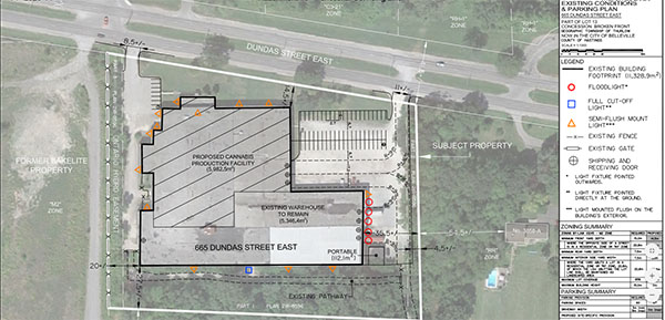 The application from Canadian Linen and Fibre Inc. seeks to turn a warehouse at 665 Dundas St. E., that was a former carpet manufacture in the 1970s, into a cannabis operation.