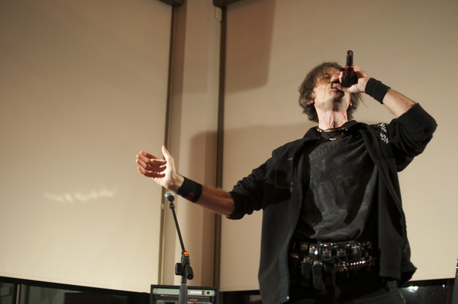 Dan Ouellette, a metal harmonicist, plays for the crowd in Alumni Hall Wednesday November 30th 2011. Oullette was just one of the acts on stage as part of the Benefit Concert for the Quinte and District Sex Assault Centre. Photo by Andre Lodder