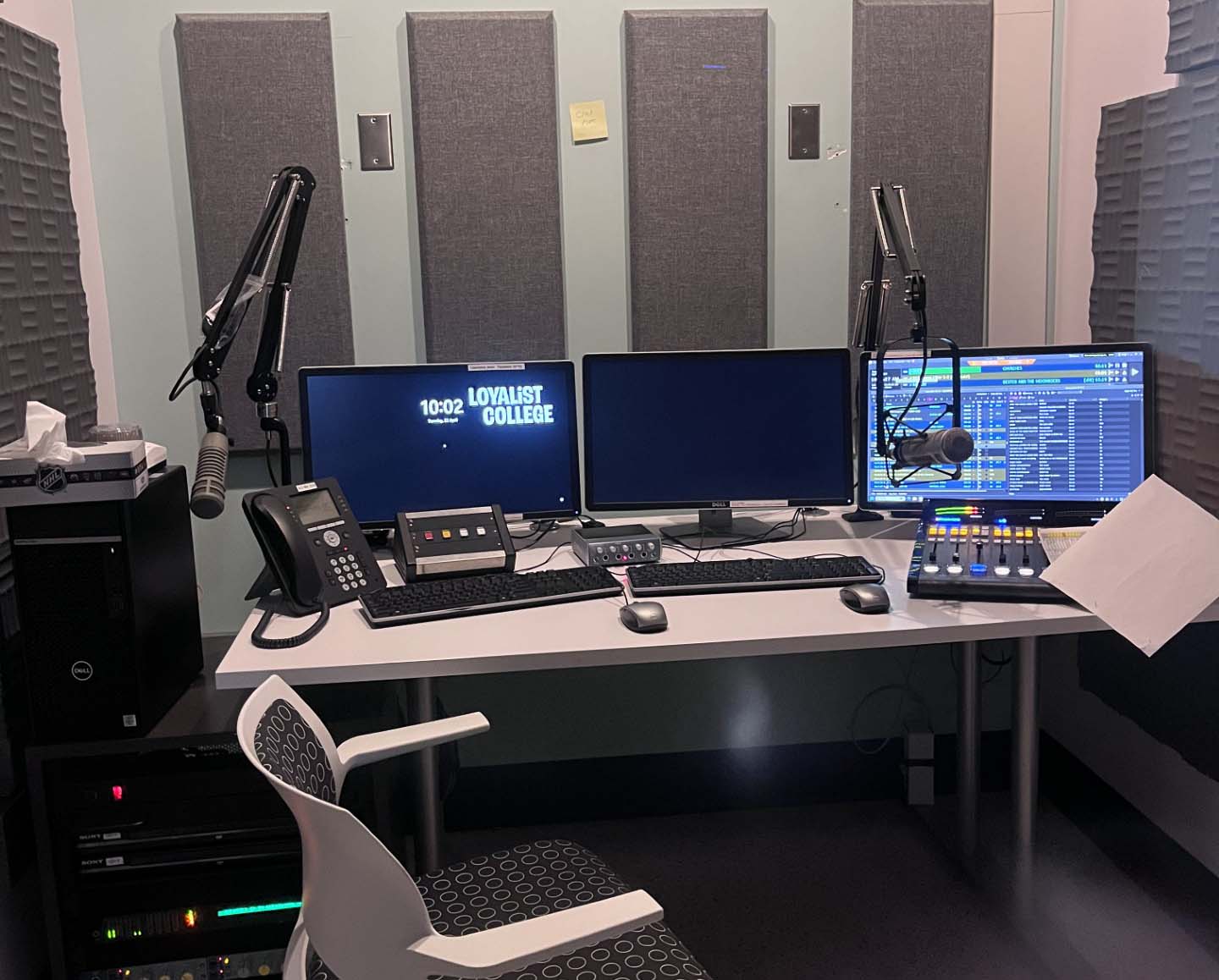 Inside the Loyalist radio suite. Photo by Sam Franks.