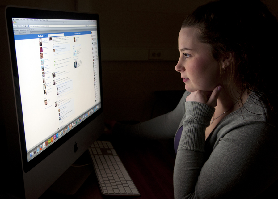 BELLEVILLE, Ont. (16/01/12) - Pre-health student Cheyenne Snider browses on Facebook at Loyalist College on Monday, Jan. 16, 2012. Most students procrastinate by going on social network websites and/or watching television. Photo by Manuela Garay-Giraldo.