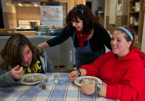 MADOC, Ont. (18/10/2011) - Colleen MacAlister waits on a table at the Foundations storefront in Madoc, Ontario. Alyssa Marlin, left, and Dolly Perdue, right, are local high school students from Madoc Public School and regularly attend the youth centre. Photo by Mark Tarnovetsky