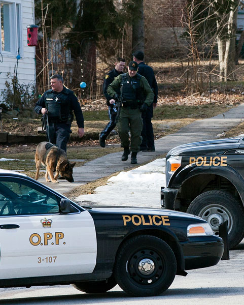 Quinte West OPP closed down part of Henry Street in Trenton, Ont. Friday morning to investigate a home after a robbery at the Korner Store. Const. Dave Snider said an unknown man entered the store at about 9 a.m. and demanded cash. He left the store with an undisclosed amount. Snider said there were no damages or injuries and that the search of the home did not turn up any new leads. No arrests have been made so far. Snider also said there have not been many robberies in the area lately. Photo by Kristen Haveman