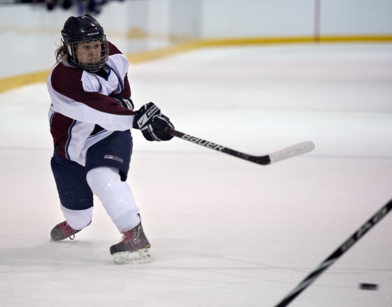 BELLEVILLE, Ont. (5/3/12) - CJ Tipping takes a shot for the St. Theresa Titans during the COSSA championship game in Belleville Ontario Monday March 5. The shot made it's way to the back of the net and won the game with just 12.1 seconds left on the clock in the third period. Photo by Andre Lodder