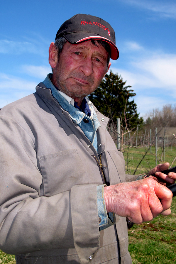Robert Dunnett stands aside his apple trees on his orchard in Brighton. The early dose of sunshine we got this year, combined with the recent below-zero temperatures, has posed a threat to his trees. Photo by Kurt Weiss