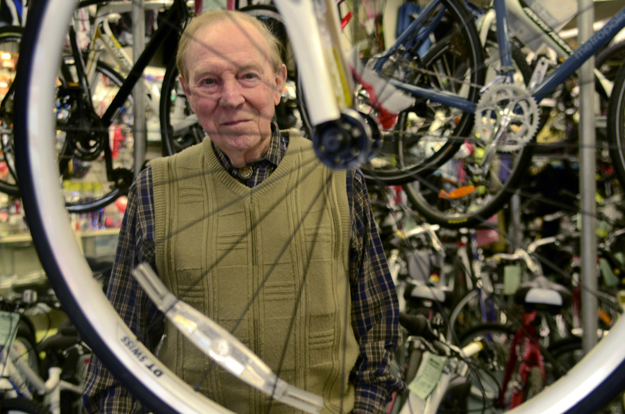 BELLEVILLE, Ont. (04/04/2012). Gerry Bongard, 82, has owned Stephen Licence Bicycles and Hobbies for the past 55 years. He has continued the legacy of the business since 1957, after buying it from a longterm employee of the founder of the business. Bongard has used his willingness to help others to create a business with a personal touch. Photo by: Chelsea Strik.