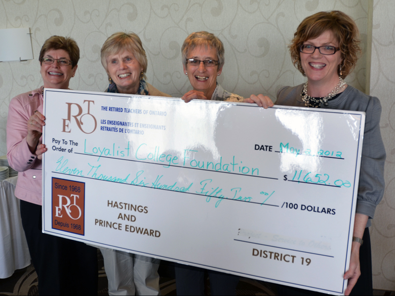 The Hastings and Prince Edward County chapter of Retired Teachers of Ontario (RTO) presented a cheque for $11,652 to the college during their annual general meeting on Wednesday.