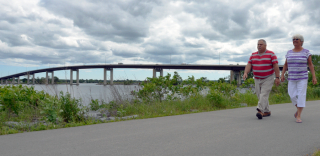 Bill and Sandra Gardner walk along the Waterfront trail near West Zwicks Park in Belleville on Thursday. The couple calls the trail “beautiful” and use it almost every day. Photo by Marc Venema.