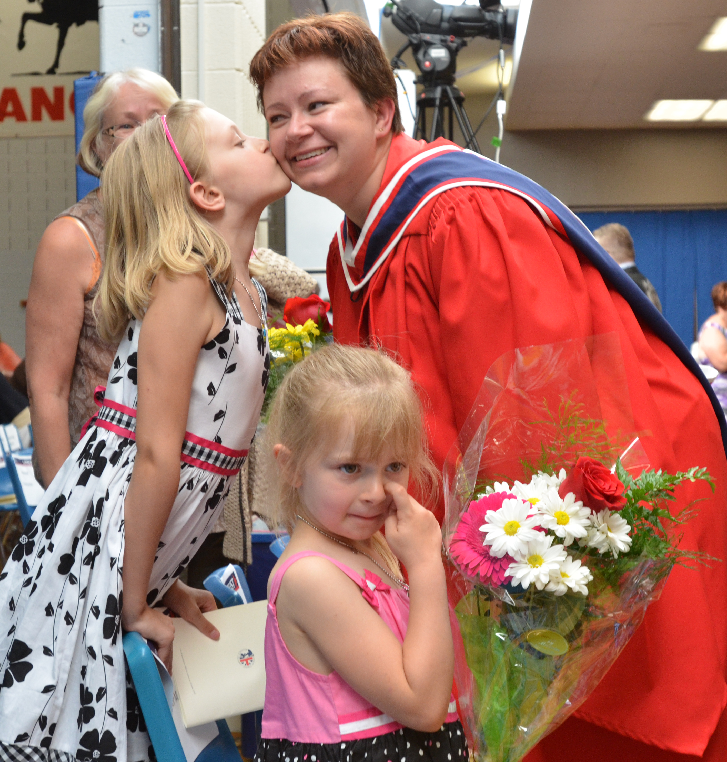 BELLEVILLE, Ont. (07/06/2012) Mary Elizabeth Webster is congratulated by her two daughters after being named top student at Loyalist College during Thursday afternoon's convocation ceremony. Photo by Marc Venema.