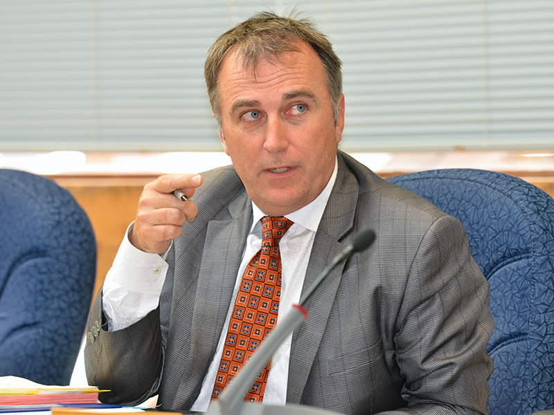 BELLEVILLE, Ont. (25/06/2012) Belleville Mayor Neil Ellis discusses the funding for the cities proposed fire hall during Monday night's council meeting. The issue will be revisited next month. Photo by Marc Venema.