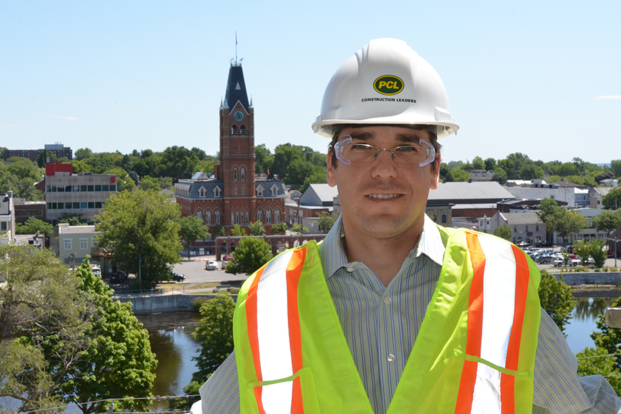 BELLEVILLE, Ont. (09/07/2012) Project Manager Matthew Rinfret stands on the east side of the fourth floor, overlooking city hall and the rest of downtown Belleville. The Quinte Consolidated Courthouse is expected to be complete by June 2013. Photo by Marc Venema.
