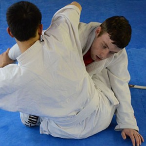 BELLEVILLE, Ont. (06/11/12) John Dixon (right) defends a Kimura attempt from a grappling partner in training. Dixon will travel to he provincial championships in Toronto on November 24. Photo by John Boldrick.