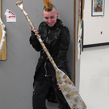 Frost says she spent a few days on the piece, first sanding down the paddle by hand and then coating it with several layers of gold and silver paint. She finished by covering it with gears and clock handles.