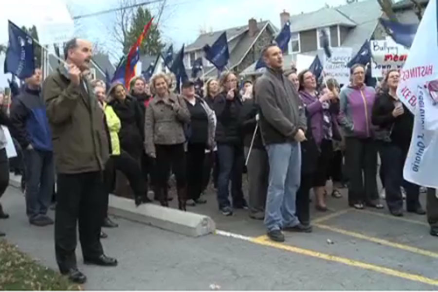 In this file photo, teacher’s rallied on Nov. 12th outside the Hastings and Prince Edward School Board.